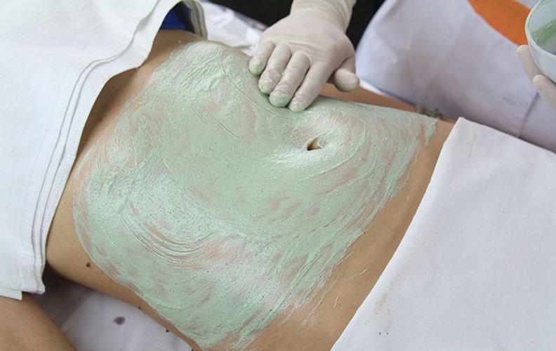 As propriedades adsorventes da argila, associadas à sudorese induzida pelo calor, auxiliam na eliminação de líquidos retidos, resultando em diminuição de inchaço e medidas corporais.