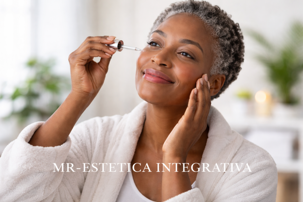 Outro aspecto funcional relevante é o impacto das alterações hormonais, especialmente na menopausa. A queda nos níveis de estrogênio reduz a síntese de colágeno, compromete a elasticidade e aumenta o risco de ressecamento, flacidez e manchas.