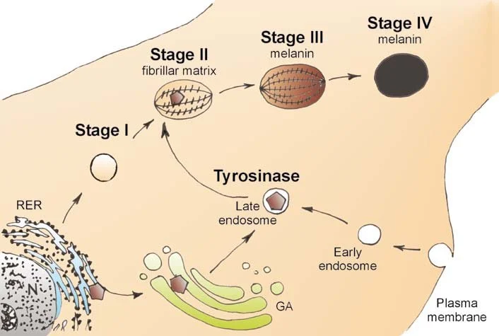 A melanogênese é o processo biológico responsável pela síntese de melanina nos melanócitos. Esse processo ocorre dentro de organelas chamadas melanossomas e envolve diversas reações bioquímicas.